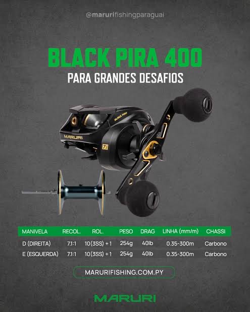 O grande diferencial deste modelo é o seu impressionante Arraste (Drag) máximo de 40lbs (18kg), um dos mais potentes da categoria, ideal para dominar peixes de couro pesados e grandes exemplares em pesqueiros. Com uma relação de transmissão de 7.1:1, a Black Pira 400 oferece o equilíbrio perfeito entre velocidade de recolhimento e torque, permitindo trabalhar iscas de forma eficiente e recuperar linha com rapidez durante a briga com o peixe.