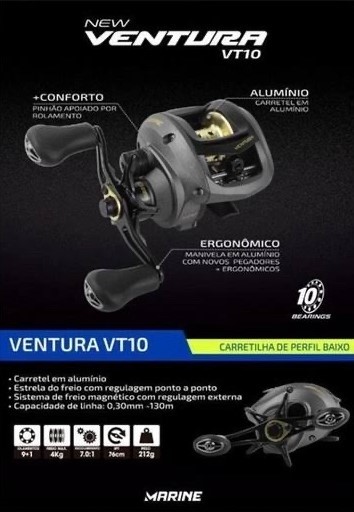 A carretilha Marine Sports Ventura VT10 chega ao mercado para elevar o nível da sua pescaria, oferecendo um conjunto tecnológico que equilibra perfeitamente suavidade e força. Este modelo de perfil baixo é reconhecido por sua ergonomia avançada, apresentando uma manivela de alumínio equipada com novos pegadores ainda mais confortáveis, o que garante uma pegada firme e precisa durante toda a jornada. Se você busca um equipamento que aguente o ritmo intenso da pesca esportiva com iscas artificiais, a Ventura VT10 é a parceira ideal para o seu conjunto.
